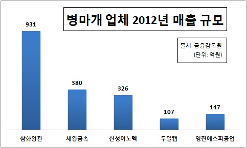 납세병마개를 40년 넘게 만들고 있는 삼화왕관은 사업 규모나 재무적인 측면에서 다른 업체들보다 크게 앞서있다. 경쟁사들의 매출이나 이익을 모두 합쳐도 삼화왕관을 뛰어넘지 못한다.