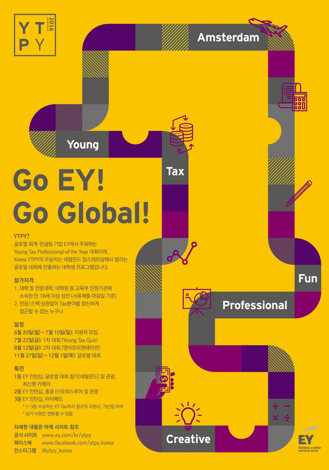경연은 7월 22일 1차 대회(택스 퀴즈), 8월 12일 2차대회(영어 프레젠테이션)의 순서로 진행되며 최종 우승자에게는 최신형 카메라와 함께 오는 11월 27일 네덜란드 암스테르담에서 열리는 글로벌 본선 대회 참가 기회를 준다. 또 2등에게는 홍콩여행권과 EY홍콩 오피스 투어 기회를 제공하고, 3등에게는 아이패드를 부상으로 제공한다.