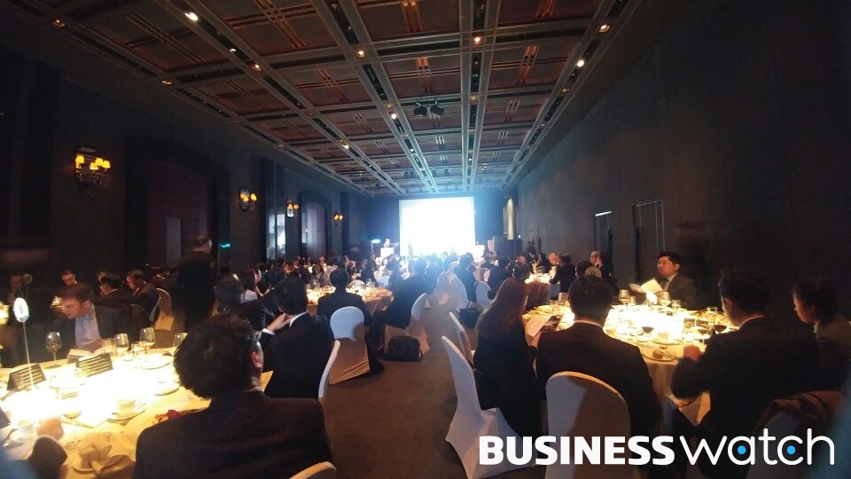 | ▲ 17일 오후 6시30분 서울 용산구 그랜드 하얏트 호텔에서 ALB와 톰슨 로이터 주최로 열린 '코리아 로 어워즈 2016'에서 한성준 사회자가 스피치를 하고 있다.사진/방글아 기자 |