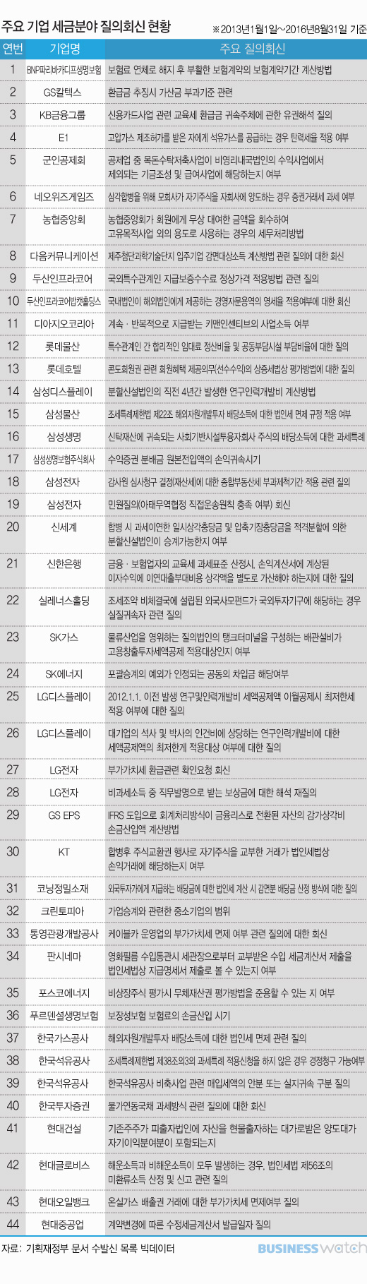 택스워치가 2013년 이후 기획재정부 세제실이 접수·처리한 1215건의 질의회신 내역을 분석한 결과 대기업 그룹 계열사 25곳이 질의회신으로 세금문제를 해결했다.