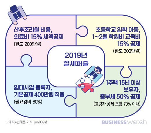 세금 제도는 매년 바뀌기 때문에 절세 전략을 세우려면 꾸준한 업데이트가 필수입니다. 특히 수많은 개정 내용 중 나에게 딱 맞는 절세 포인트를 찾는 것이 관건인데요. 2019년 실생활에서 경험하게 될 절세의 조각들을 맞춰봤습니다. [편집자]