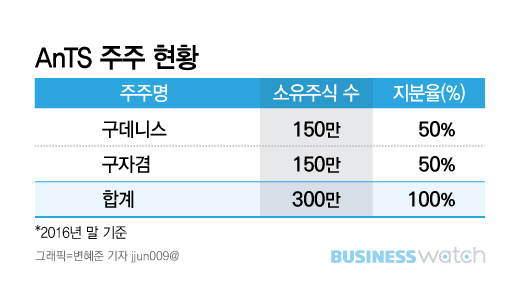 국세청의 과세 통보 당시 AnTS의 1대주주(공동)는 최신원 회장의 맏사위로서 지분 50%(현재 49.97%)를 소유한 구데니스 대표였다. 2015년 7월 최신원 회장이 지분 100%를 20억원에 구 대표와 그의 숙부 구자겸 NVH코리아 회장에게 각각 50%씩 매각한 데 따른 것이다.
