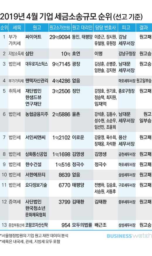 [2019 택스랭킹] [인포그래픽]기업 세금소송